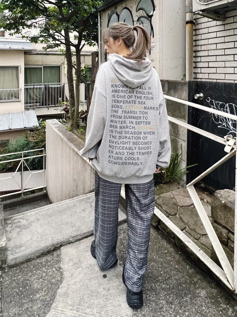 AUTUMNBREEZEパーカー color:Heather gray,black size:free チェックイージーパンツ color:black,brown size:free UGLYソールスニーカー color:black size:small,medium