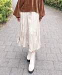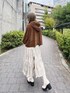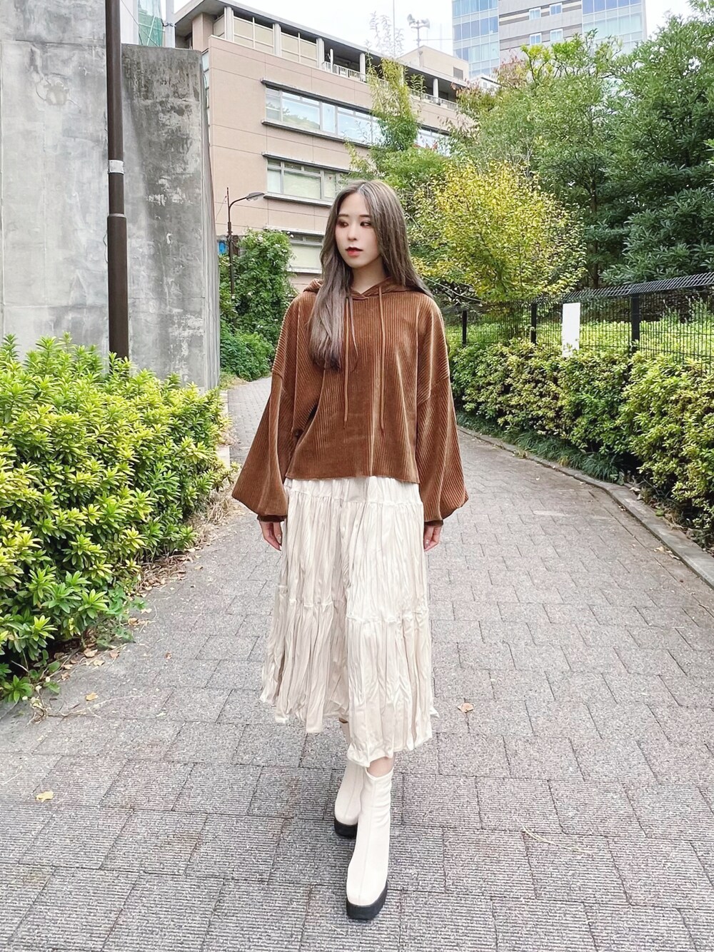 コーデュロイクロップドパーカー color: khaki, brown, gray size: free グロッシープリーツベロアスカート color: off-white, black size: free