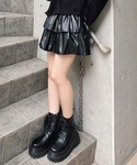 ショートダメージニット color: black, white size: free エコレザーフリルミニスカート color: black size: small, medium コンバットブーツ color: black size: small(23.5), medium(24.5)