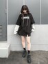 フェイクレイヤードフードロンT color: gray, blue, black size: small, medium スリットミニスカート color: black size: free ディフェンダースニーカー color: black, white size: small(23.5), medium(24.5)