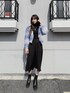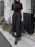 タイダイドロップショルダーカーディガン color: purple, black size: free ハイネックトップ color: black, white size: free プリーツミドルスカート color: black, off-white size: free 2連マリアコインネックレス color: black, blue size: free