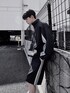 オーバートラックジャケット color: black, saxe blue, purple, green size: large, extra large ハーフトラックパンツ color: black, saxe blue size: small, medium カレッジロゴTシャツ color: gray, black, khaki size: small, medium メタルデザインネックレス color: silver size: free
