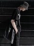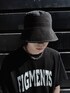 カレッジロゴTシャツ color: black, khaki, gray size: small, medium ステッチカーゴパンツ color: black size: free ステッチバケットハット color: black size: free メタリックショッパーバッグ color: black, silver size: free
