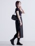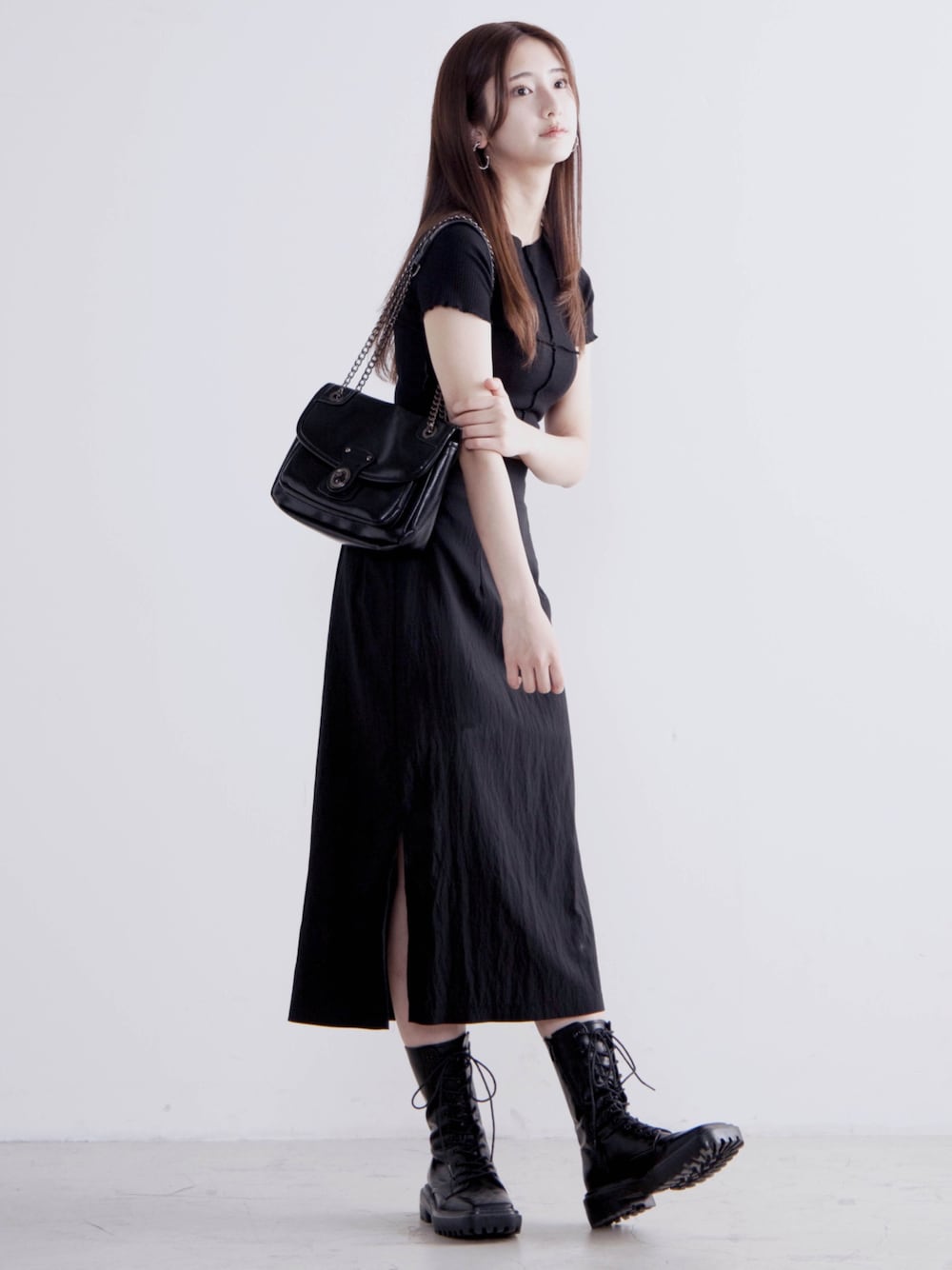 オーバーステッチチビTシャツ color: black, white, khaki size: free サイドスリットロングスカート color: black size: free