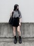 BARCELONA Tシャツ color: gray, black size: free サイドZIPミニスカート color: black size: small, medium ボリュームソールスニーカー color: black, white, gray size: small(23.5), medium(24.5) ライダース巾着ショルダーバッグ color: black size: free