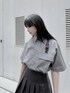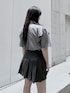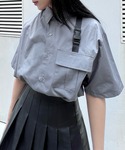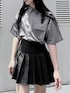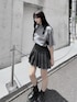 ベルテッドシャツ color: gray, black size: small, medium フェイクレザープリーツミニスカート color: black size: small, medium コンバットブーツ color: black size: small(23.5), medium(24.5)