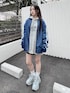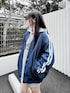 オーバーサイズラインボンバージャケット color: blue, black size: large, extra large スポーツロゴパーカー color: gray size: free