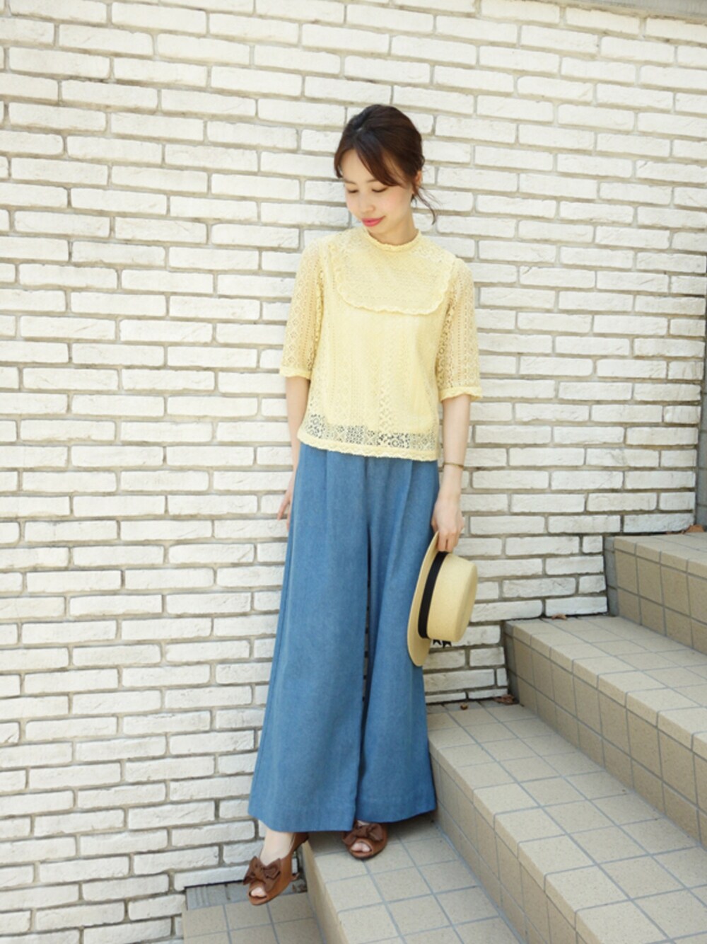 F i.n.t(F i.n.t オンラインストア)のシャツ/ブラウス「ストライプレースヨークブラウス/F i.n.t」を使ったコーディネート
