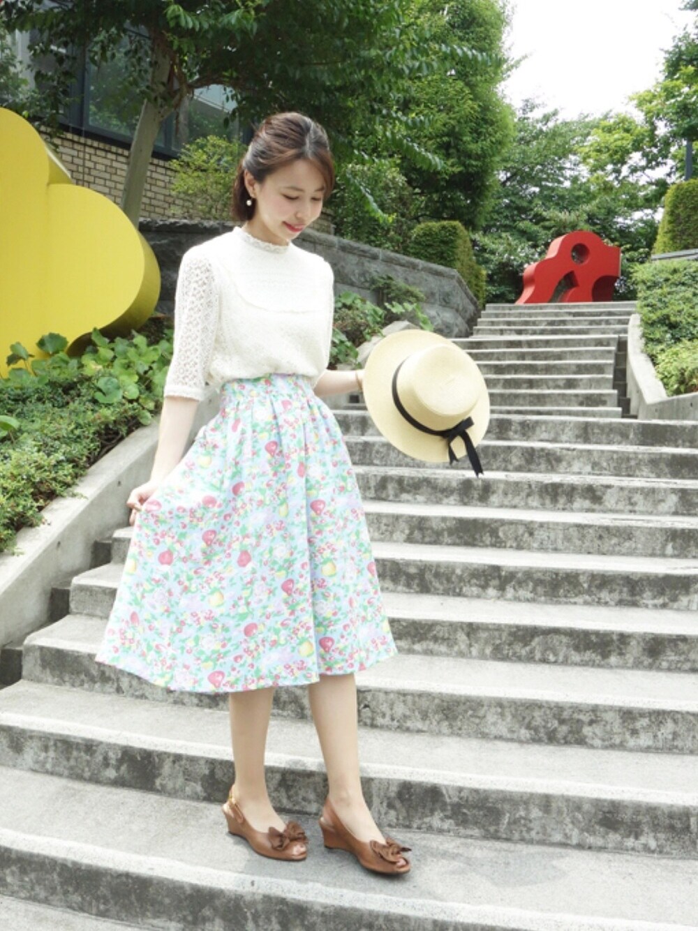 F i.n.t(F i.n.t オンラインストア)のスカート「フラワーベース柄バックリボンギャザースカート/F i.n.t」を使ったコーディネート