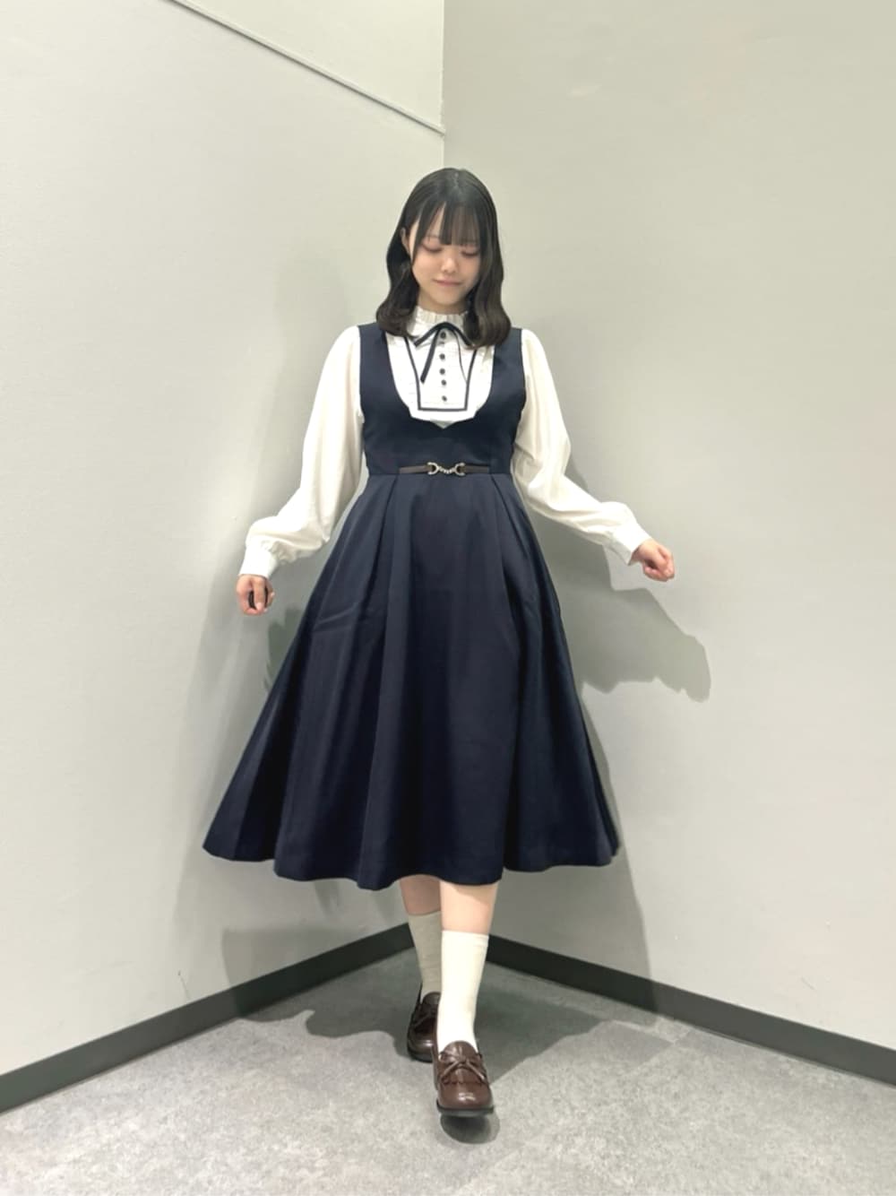 ☁️🌷𝑠𝑝𝑟𝑖𝑛𝑔 𝑠𝑢𝑚𝑚𝑒𝑟 𝑐𝑜𝑙𝑙𝑒𝑐𝑡𝑖𝑜𝑛🌷☁️ フィントで大人気のジャンスカが今年も登場いたしました૮( ̳ т ̫ т ̳ )ა♡ 自然とウエストをきゅっとみせてくれるかたちがとってもお気に入りです。♩ ブラウスは"リボンタイ付きロゴ刺繍衿ブラウス"のリボンを拝借し、よりガーリーなコーデにしてみました。᧔𐓪᧓ さらっとしていて軽やかな生地なので、夏でも長袖着たい派の方にもオススメです。 • + . ˙ ✦ ♡ㅤ°. • °. ✿ * • + . ˙ 【profile】 height:153cm personal:color spring frame:wave shoes:22cm(s)