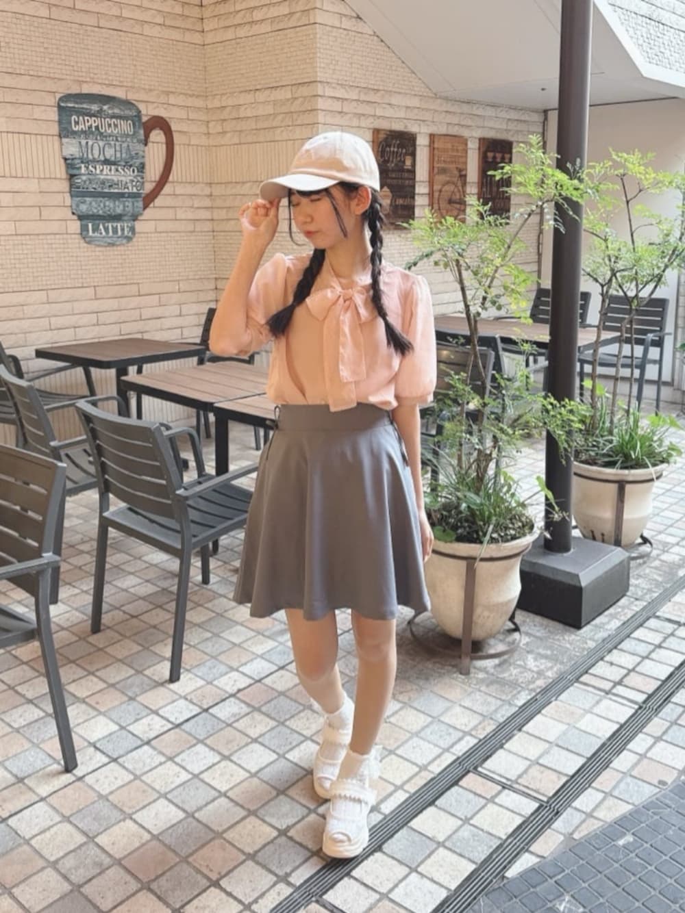 🌸春のテーマパークコーデ🌸 スカートは裏地がパンツ仕様になっていてテーマパークなどではしゃいでも安心です✨ 特にポケットが着いてるのが携帯なども入れられるのでとても便利です❣️ また、靴はスニーカーサンダルで動きやすくアクティブに👟 1日仕事で履いても全く疲れませんでした‼️ カジュアルになりすぎないよう、ブラウスは甘さ全開でコーディネートしてみました! キャップで暑さ対策もバッチリに🧢 スカートもブラウスも軽めの生地なのでとても動きやすくて、お気に入りです💕 カーディガンなど合わせるのも可愛いと思います♥️ 骨格ウェーブの上半身が薄い悩みもブラウスのリボンでバッチリカバー出来ます◎♪ ぜひ参考にしてみて下さい!