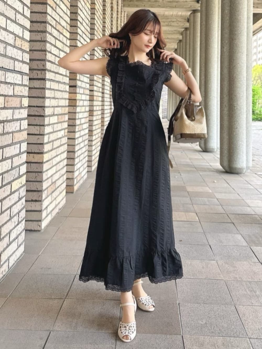 1枚で様になる、 コットンワンピでエレガントStyle* ✓𝘰𝘯𝘦𝘱𝘪𝘤𝘦 シネマヒロインのルームフェアから インスパイアされたコットンワンピース。 ポイントとなるトーションレースで ヴィンテージムードを漂わせながらも BLACKでエレガントな着こなしが 私のおすすめスタイル* 150cmの身長でやや足首が見える丈感なので 小柄さんでも素敵に着ていただけます♡ 私も購入したので、 ぜひお揃いしましょう...*