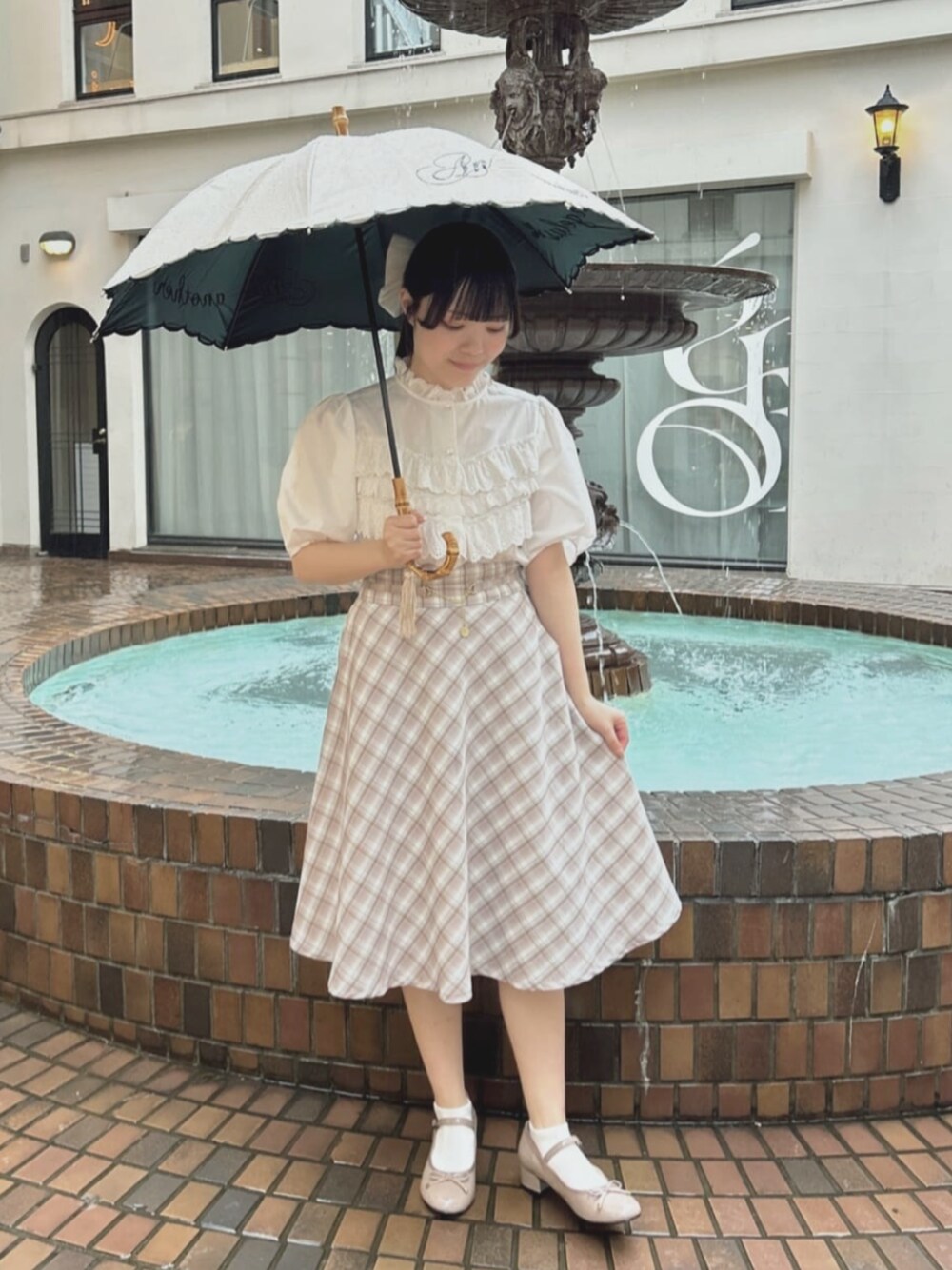 レインパンプスを使った雨の日コーデ☔♡ 梅雨本番に向けて雨の日にぴったりなコーデを着てみました🌧️♩ スカート… サイズ1を着用しました。 身長153センチで膝下丈なので、小柄な方が雨の日に履いても裾が濡れたり汚れたりする心配は少ないかと思います🪄 シューズ… 水がしみてこないエナメル素材のレインシューズ。こちらの写真を撮影した日は実際雨が降っておりましたが、靴下にしみることなくしっかりと雨からまもってくれました。 (濡れたシューズは布などで水を丁寧に拭きとると◎) 傘… 晴雨兼用なので日傘としても雨傘としても使えるアイテム。午後から雨がふる、夜だけ雨がふる、なんて日にも活躍してくれそうです😌 • + . ˙ ✦ ♡ㅤ°. • °. ✿ * • + . ˙ 🕊️【𝗌𝗍𝖺𝖿𝖿 𝗉𝗋𝗈𝖿𝗂𝗅𝖾】 身長:153cm 骨格:ウェーブ パーソナルカラー:イエベ春 顔タイプ:フレッシュ シューズサイズ:22~22.5cm(Sサイズ)