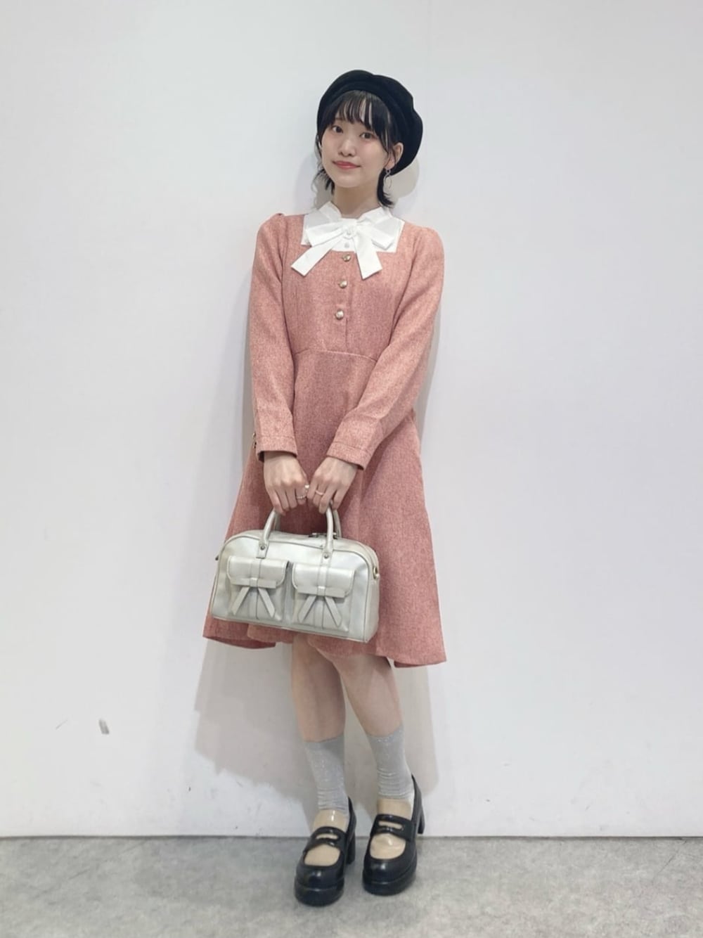 \リアルバイ♥️主役級ワンピース/ 一枚着るだけで一気にシネマヒロインになれるワンピースをお迎えしたのでご紹介します✨ ⚫︎ワンピース 今季のテーマカラーであるREDをgetしました🌹 ツイード素材の織り感のおかげで色味が強すぎないので普段REDを着ない方も挑戦しやすいと思います! ウエストをシェイプしたシルエットになっているので、ベルトをしなくても綺麗なフィット&フレアーシルエットで着ていただけます😊 ⚫︎バッグ バッグとソックスをシルバーにしてちょっぴり抜け感を演出…🩵 シルバーの小物は持つだけで簡単にお洒落に見えるのでおすすめです! ⚫︎ベレー帽 しっかりハリのある生地と、中にある調整用のマジックテープと外側の絞れるリボンのおかげで簡単に綺麗にかぶれます◎ ベレー帽は、かぶるのが苦手という方にも是非挑戦して頂きたいです🔥 -------------------------------- 【スタッフ情報】 身長:154cm 骨格:ストレート パーソナルカラー:ブルベ夏 シューズサイズ:23.5cm(Mサイズ)