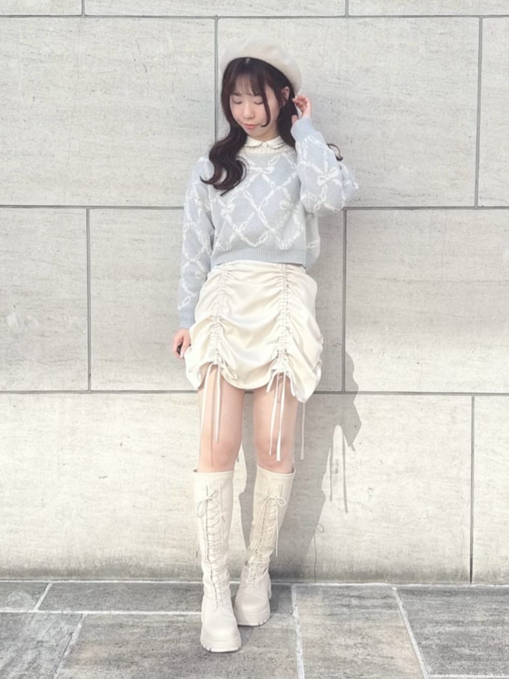 ୨୧┈┈┈┈┈┈┈┈┈┈┈┈┈┈ ୨୧ 𝖽𝖾𝖼𝗈𝗋𝖺𝗍𝗂𝗈𝗇 𝖼𝖺𝗄𝖾 𝖼𝗈𝗈𝗋𝖽𝗂𝗇𝖺𝗍𝖾 🧁🎀 ・𝗌𝗄𝗂𝗋𝗍 ドロストでトレンド感もありつつ、 ivoryはホイップのデコレーションのように 見えるかわいいスカートが入荷してます🎂 ドロストの絞り具合はお好みで微調整も◎ そしてこのスカートは ペチパンツも付いてくるもポイント高いです.⋆𝜗𝜚 ・knit ニットにもリボンがたっぷり🎀 ポリエステル80%でしっとり系です! ニットのチクチク感が苦手な方にも とってもおすすめです♡♡ シャツと重ねて着ていただくと Fi.n.tらしさも出てかわいいです🫶🏻 ・𝗌𝗁𝗈𝖾𝗌 … 私物 ୨୧┈┈┈┈┈┈┈┈┈┈┈┈┈┈ ୨୧ 𝗌𝗍𝖺𝖿𝖿:𝟣𝟨𝟢𝖼𝗆 𝟤𝟥~𝟤𝟥.𝟧𝖼𝗆(幅広甲高指長) 骨格ウェーブ / イエベ春