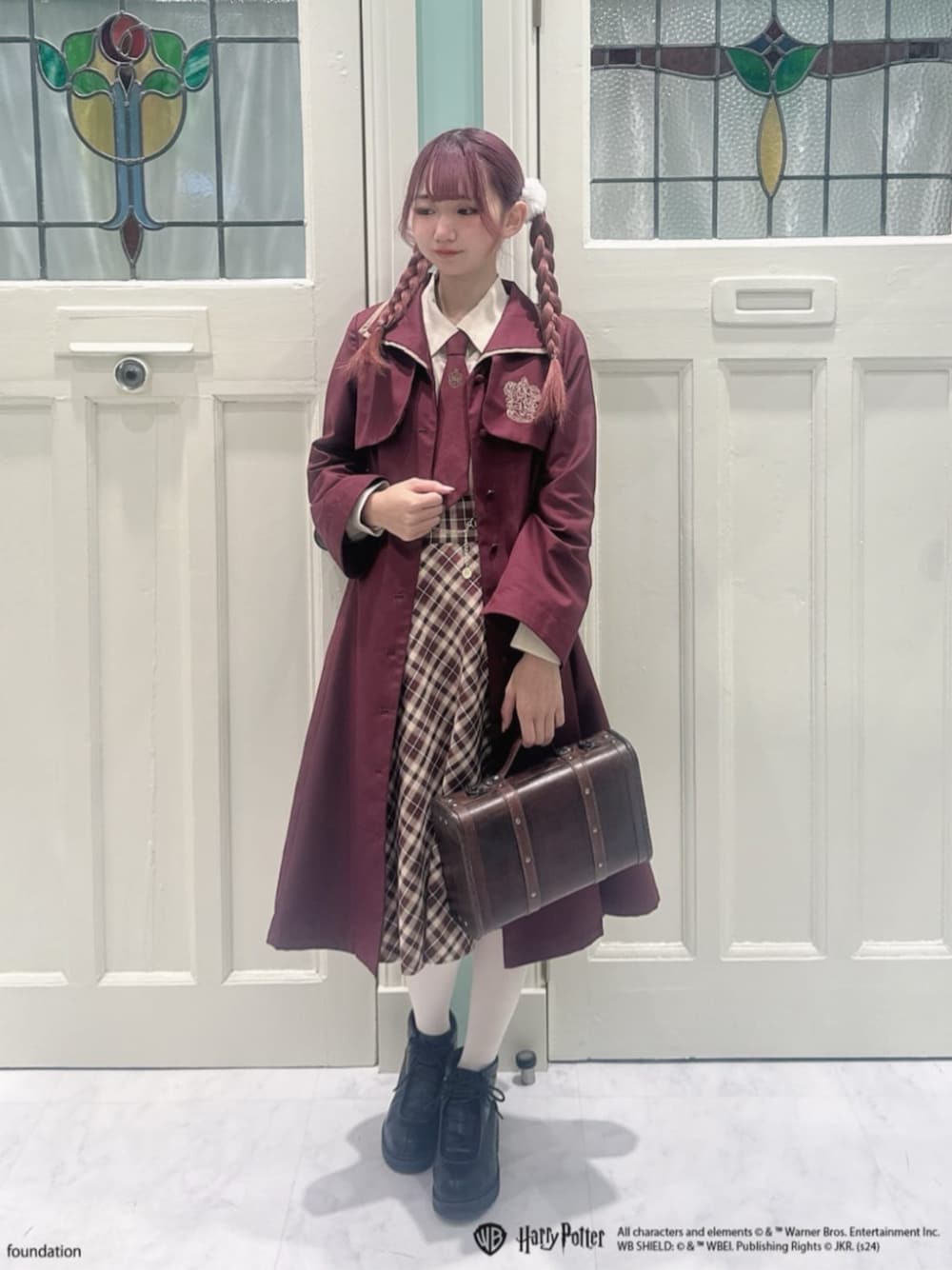 『ハリー・ポッター』 スペシャルコレクションコーデ ✼••┈┈••✼••┈┈••✼••┈┈••✼••┈┈••✼ ハリー・ポッターコレクションのアイテムを使ったコーディネートです💕 ワンピース》 コレクションアイテム1つ目はローブ風ワンピース❣️ こちらは各寮カラーの無地のワンピースです! 各寮のエンブレムが胸元に刺繍されています❤︎ ローブ風ワンピースは閉じてワンピースとして着るとウエストから下のスカート部分がふわっと広がりとても可愛いシルエットでした🎶 前を開けてローブみたいに羽織って中のブラウスやスカートをチラ見せするのもとても可愛いかったです♥️ 薄めのニット素材なら重ね着可能なのでハイネックやタートルネックのニットを合わせてあげるのも素敵だと思いました😍 ブラウス》 今回はネクタイ付きのシャツと組み合わせてみました! ネクタイにワンポイントで付いているエンブレムの刺繍がハリー・ポッターコレクションとの相性も良くてとてもお気に入りです💕 ネクタイは簡単に外すことも出来るのでお好きなブラウスに使い回していただけます🍀*゜ スカート》 コインチェーンの可愛いスカート💕 今回はサイズ1で履きました!前回のスカートとは違い丈が少し短めなのでワンピースの下から見えなくて前を開けた時にだけ見えるチェッ柄がとてもお気に入りです😍 シューズ》 リアルバイシューズの中でも1、2位を争うお気に入りのブーティー❣️ LIVEや、仕事など長時間歩いたり立っていても疲れませんでした🎶 Fi.n.tとハリー・ポッターのスペシャルコレクションコーデいかがでしたか? 私はブラウスをスリザリン(green)、ワンピースをレイブンクロー(navy)でGETしました!! 気になる方はぜひ、他のスタッフのコーディネートも見てくださいね🍀 店頭販売もございますので池袋店にてお待ちしております😊 皆様のコーディネートの参考になりましたら嬉しいです✨ ✼••┈┈••✼••┈┈••✼••┈┈••✼••┈┈••✼ - profile :- 158cm/24.5cm/骨格ウェーブ(ナチュラル寄り)/イエベ春