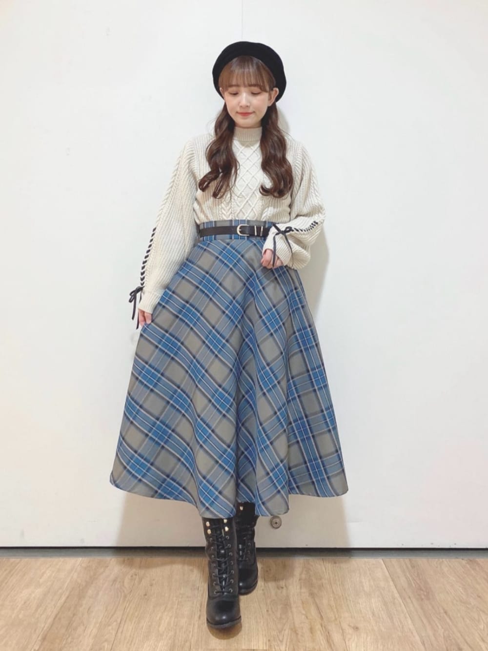 F i.n.t(F i.n.t オンラインストア)のスカート「【2サイズ展開】ベルト付きチェックフレアースカート/ananotherangelus」を使ったコーディネート