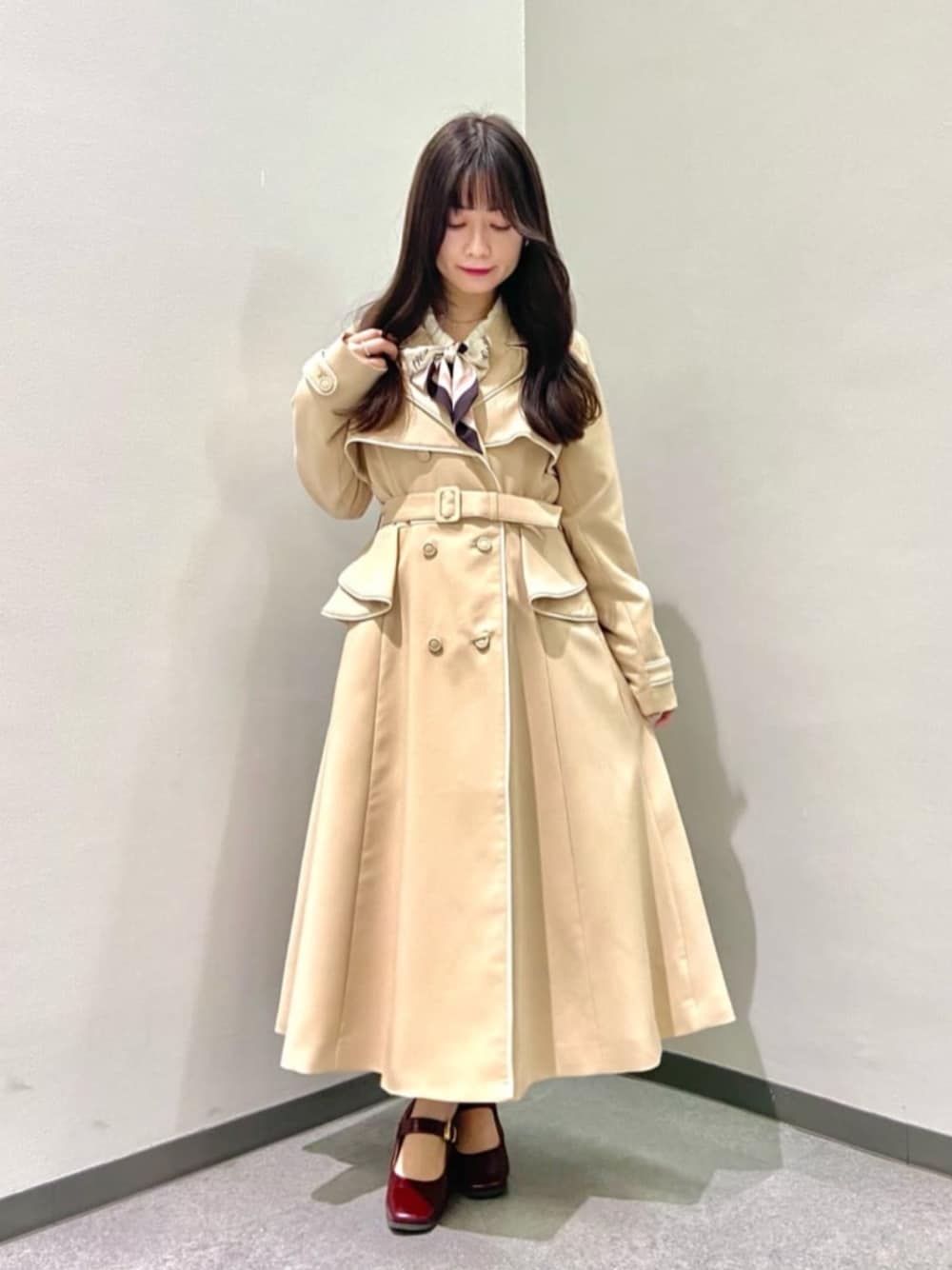 春らしさ満点で美シルエットのトレンチコート♡ 暖かくなったらお出かけで活躍しそうです! 【アウター】light beige パイピングの配色が柔らかい雰囲気のアウター。 前を閉じて着るとかっちりした印象になり、前開きでもぺプラムのデザインが目立ちます! ウエストベルトは穴なしタイプですが、生地に程よく摩擦感があるのでしっかり留まってくれます◎ サイズ感はブラウスを着てもゆとりがしっかりあるので、薄手のカーディガンやニットは重ね着OKでした♪ 【コーデ】中のコーデはこちらでご紹介してます♡ https://www.fint-shop.com/p/coordination/6727563 ※シューズはスタッフ私物です 《リアルバイアイテム》 《プロフィール》 150cm/23.5〜24(M)/骨格ウェーブ/ブルベ夏