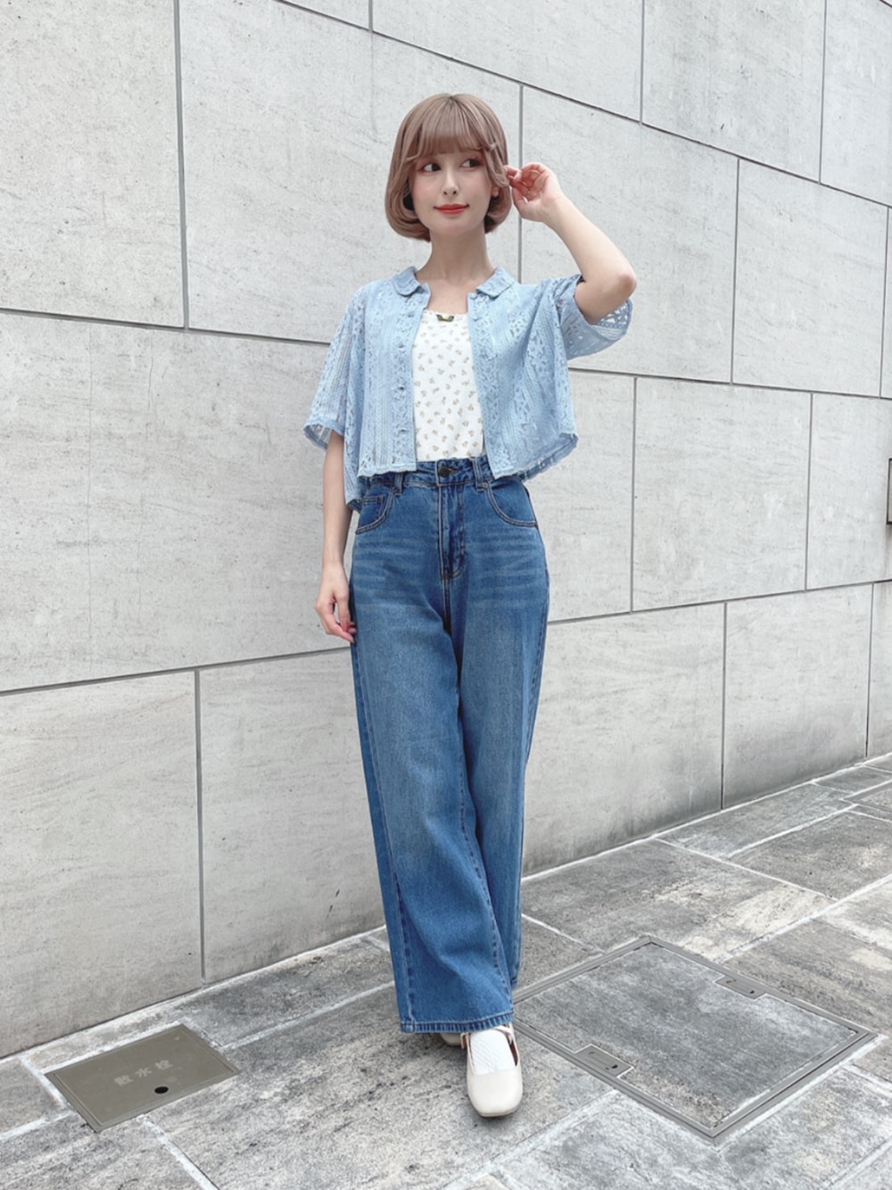 今シーズンのテーマの映画からインスパイアされたシャツが主役のスタイリングです♪ 繊細なレース素材が、フェミニンさを引き立ててくれます。 今回はデニムでカジュアルダウンさせてみました♡ゆったり目のシルエットでリラックス感もプラスしてます。 シャツの淡いブルーの色合いが、春にぴったりで、爽やかな印象を与えてくれます♡ -model profile- height: 152cm frame:ウェーブ personal color:イエベ春