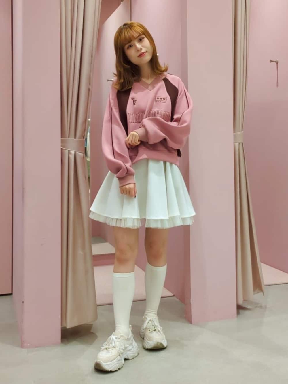 ゲームスウェットコーデ♡ 〇スウェット パンツでもスカートでも合わせられるので、とりあえず持っておけば絶対使えます◎ 生地はサラサラしてるので着心地抜群です! 〇スカート (グレーをリアルバイ) サーキュラースカート可愛すぎますよね.ᐟ.ᐟ 裾から覗くチュールもボリュー厶も他のお店には無い雰囲気で素敵です♡ スカートは裏地が肌色っぽいので白でも意外と透けにくいです◎