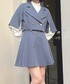 クラシカル×モダンな上品セットアップコーデ *セットアップ パキッとした青みあるグレーのお色が 目を惹くセットアップは きちんと感と可愛さを両立してくれます✨ お袖のボタンを外してケープ風& ジャケットのボタンを開けて上品な着こなしに。 スカートはサイドにプリーツがあるので広がりすきず綺麗なシルエットに。 後ろゴムで履きやすかったです! *ブラウス ドレープタイのブラウスを合わせて胸元にエレガントさを演出。 そもそもドレープって?💭 布が自然にゆるやかに垂れ下がる、たるみやひだの表情のことを呼びます。 その柔らかさを活かしたタイなのできちんとしながらもかしこまりすぎない印象に✨ 生地感はほどよくハリ感のあるツルッとしてるので着心地も🙆♀️ 足元は黒ブーツで引き締めているので、 大人ミニのコーデにおすすめです! 参考になりましたら嬉しいです❤︎ 【 163cm / ブルベ / 23.5(M size) 】