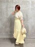 150cm / イエベ春 / 骨格ウェーブ / 足のサイズ23〜23.5cm おかえり♪ 小花柄ブラウス💐💛 ▢ブラウス 数年前からフィント定番だった花柄オフショルブラウスが帰ってきましたー🥺✨️✨️ リボン付きでフェミニンガーリーなオシャレが楽しめます🎀 上からすぽっと手軽に着れちゃうところも楽ちん👍🏻 オフショルとしても、首元の開きが苦手な方はそのまま着ていただければ肌の露出も抑えられます🙆♀️✨️ 今回着用したカラーはイエロー💛 ピンクとパープルは地の色が淡いピンク系ですが、イエローは黄身がかった生地にお花がプリントされて優しさ溢れる印象に♪ デニム併せもおすすめです〜 ▢スカート お花の色味と合わせて間違いない組み合わせに🌼 推し活にもおすすめ🙆♀️ タイトスカートですが、そこまで身体にフィットしすぎず、下半身を気にしがちな私もゆとりを感じるサイズ感!(ありがたい……) ウエストは後ろが伸びの良いゴムなので、トップスも楽々イン✨️ ハイウエスト効果でくびれをアピしていきましょう。 ▢スニーカーサンダル(Mサイズ) 普段23〜23.5でMサイズがぴったり!