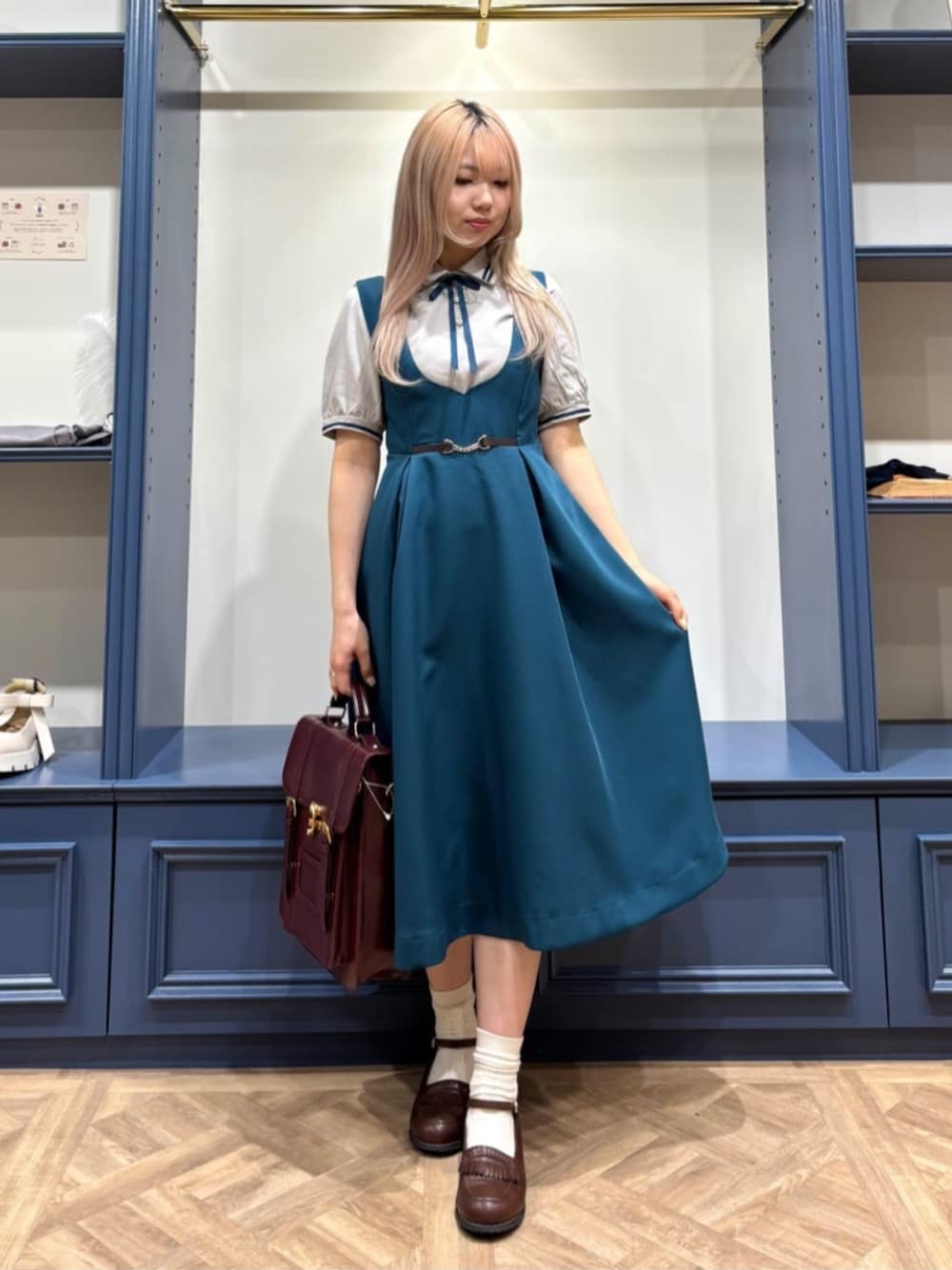 夏まで着られるお出かけコーデ🍀 ジャンスカの色とリボンの色を合わせたプレッピースタイルにしてみました☺︎ 【トップス】 さらっとした生地感のポロシャツで透け感は全くないです◎ リボンは安全ピンで取り外し可能になっています🧷 ピタッとし過ぎないので夏も絶対快適です〜♪ 【ボトムス】 人気のジャンスカが再登場✨ ポケットも付いていて便利な上に後ろがゴムなので着心地も抜群です◎ 【シューズ】 リアルバイのローファーを合わせてます☺️ 23.5〜24.0cmの方はLがちょうど良さそうです◎ 【バッグ】 人気のサッチェルバック残りわずかです💦 A4サイズも入るので通学にも使えます♪ ┈┈┈┈┈┈┈ ❁ ❁ ❁┈┈┈┈┈┈┈┈ ・身長: 155cm ・骨格: ストレート ・パーソナルカラー: ブルベ夏(1st),イエベ春(2nd) ・足のサイズ: 23.5〜24.0cm ┈┈┈┈┈┈┈ ❁ ❁ ❁┈┈┈┈┈┈┈┈ 某アニメの制服に似てるとめるちゃんが言ってたので、調べてみたら雰囲気似てました笑 推し活にも使えるかもです♪