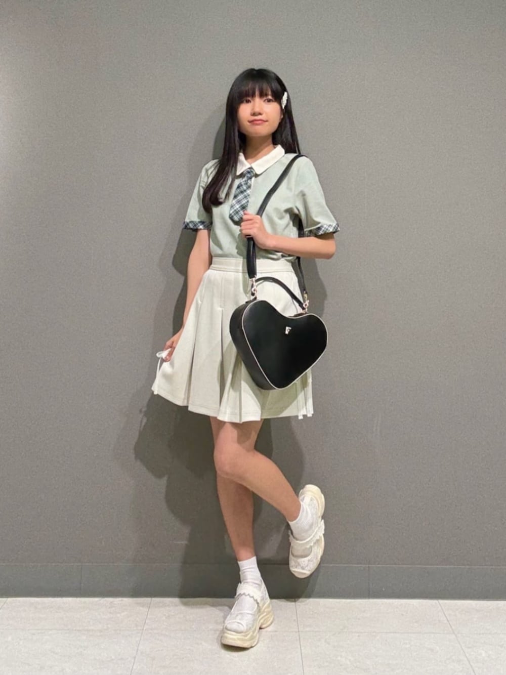スポーティポロコーデ✨ 【ポロシャツ】 今年も可愛いポロが入荷いたしました♡ ネクタイは輪っかになっており取り外し可能です♪ こちらのタイプは全色カラーなので、 透け感も特に気になりにくいですよ! 【スカート】 私はネイビーをゲットしております😌 ウエストがゴムで楽ちんです♡ クレリック襟のカラーと合わせるの可愛くておすすめです! 【サンダル】 去年も人気だったアイテムです! 23.5cmでMサイズがぴったりでしたが、 ゆとりを持って履く方が好きなので 個人的にはLサイズがちょうどいいと感じました! 【バッグ】 500mlペットボトルも入ってしまう優秀バッグです♡ 明るいカラーのお洋服が増える時期なので、 あえてバッグは黒を選びました! Profile📝 •165cm •骨格ナチュラル