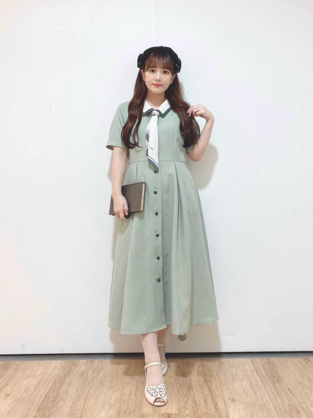 夏の甘めコーデ🌱 【ワンピース】 サラッと着やすいワンピース✨ スカーフ付きのブラウスのスカーフをワンピースのタイと入れ替えてみました(^^) スッキリと夏らしいカラーリングに♪ 推しカラーでライブ用に選ばれる方多いです! 【サンダル】 昨年販売していたサンダルを着用! 150cm イエベ春 骨格ウェーブ 足のサイズ 22.5cm