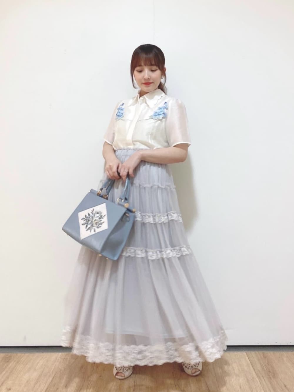 アイスブルーカラーでまとめた見た目ひんやりコーデ🧊 【バッグ】 マチがしっかりとあってペットボトルはもちろんiPadなども入りそうです✨ バッグの底が高さ出るようになっているので汚れる心配ないです(^^) バッグに合わせてコーデ組むと楽しそうですよね♪ 【ブラウス】 透け感があり真夏でも涼しく着れそうです🎐 中にはタンクトップやキャミを着るのがおすすめです! 【スカート】 揺れるシルエットがとっても可愛いスカート! ウエストゴムで楽ですし、低身長さんも安心して着て頂ける丈感です(^^) ブラウスと合わせるとかっちり感出てバッグとの合わせバッチリです👌 150cm イエベ春 骨格ウェーブ 足のサイズ 22.5cm