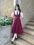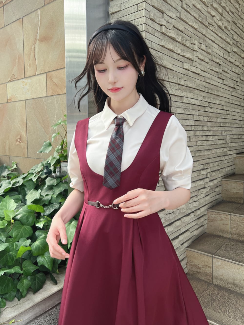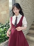 好印象間違いないレトロガーリーな大人っぽスクールスタイルです♪ クラシカルな深みのあるボルドカラーのジャンパースカートが主役のコーディネート♡ 清潔感のある白のブラウスと、知的なチェック柄のネクタイを合わせることで、上品ながらも遊び心を感じさせるスクールテイストになってます✨ 足元は白ソックス×ブラウンのローファーでレトロ感をプラス。甘すぎず、どこか懐かしさを感じさせるスタイリングは、周りと差をつけたい方におすすめです◎ -model profile- 身長:157㎝ 骨格:ウェーブ✕ナチュラル パーソナルカラー:ブルベ シューズサイズ:23.5cm M