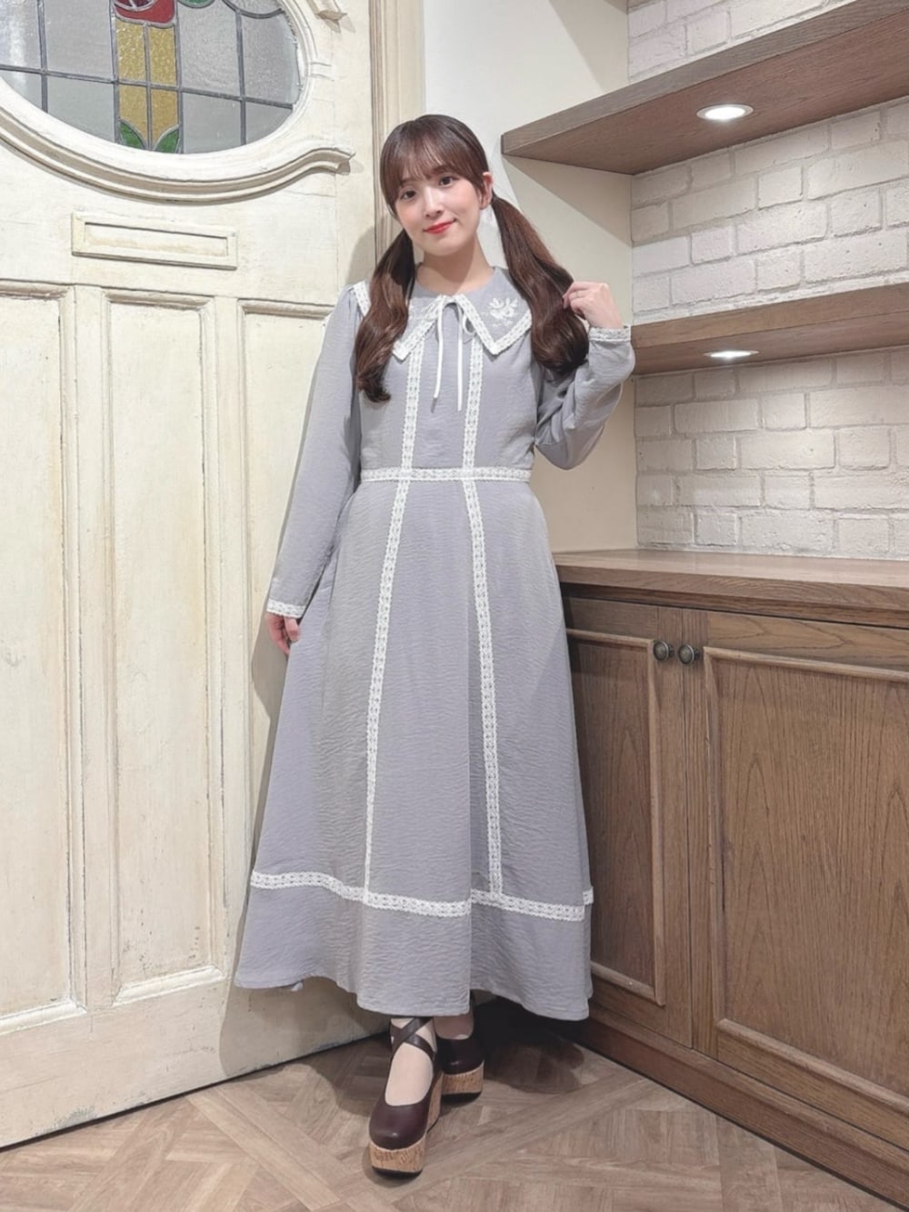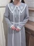 クラシカルガーリーなワンピース🩶 【ワンピース】 サラッとした素材で夏でも長袖着る方はぴったりな素材です! ウエストはゆったりめなので細身の方はベルトを付けても◎ 白い刺繍がワンピースの生地に合っていて儚げ可愛いです❤️ 長さも150cmで足首丈なので引きずらず着やすいと思います✨ 【パンプス】 22.5cmでSサイズ着用! 足首を固定してくれるストラップなので歩きやすさ◎ 軽くてそこもおすすめです! 150cm イエベ春 骨格ウェーブ 足のサイズ 22.5cm