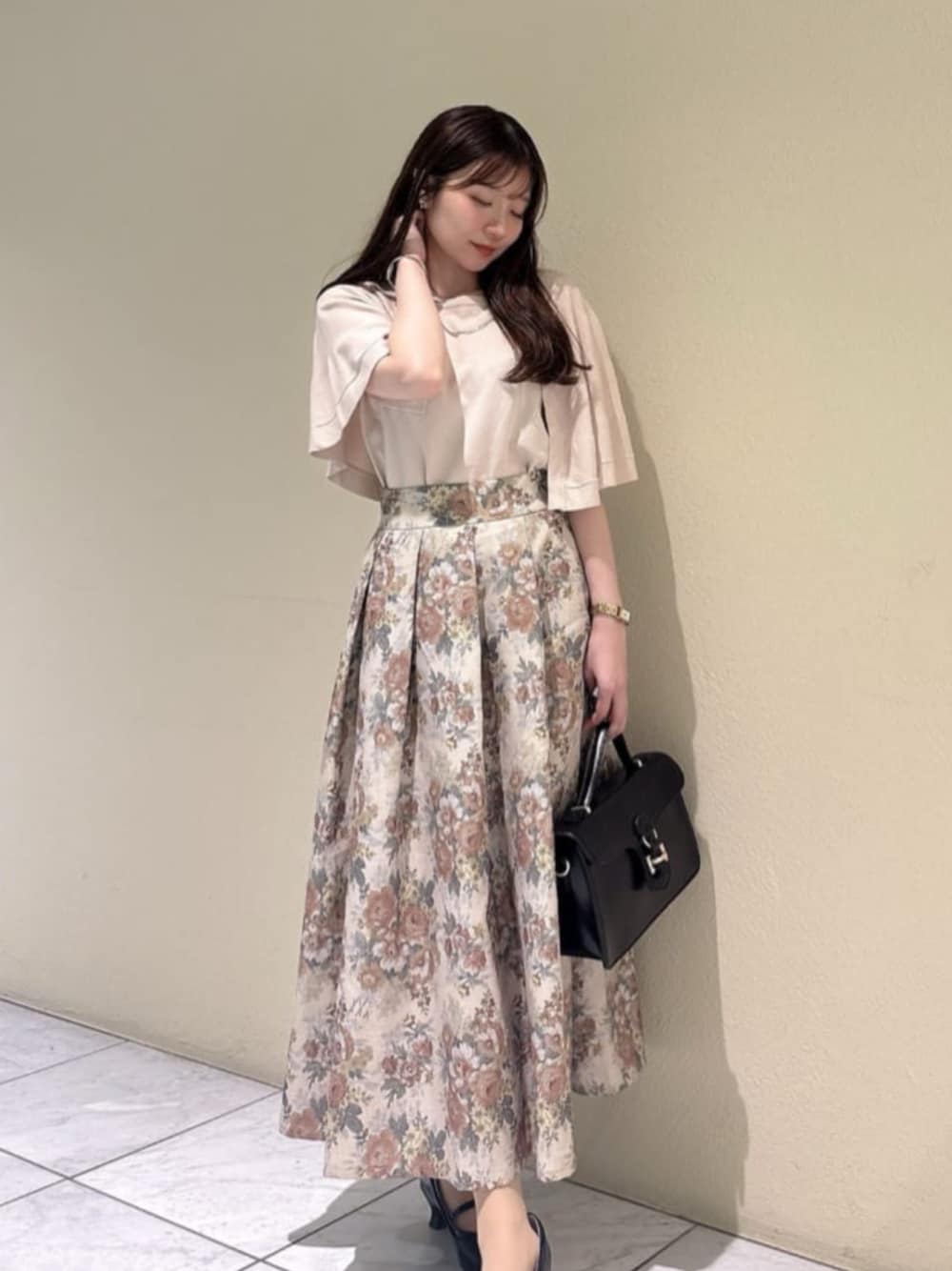 秋を華やかに彩る エレガントstyle ✓ 𝘵𝘰𝘱𝘴 さらっと薄い生地で涼しい着心地です。 ✓𝘴𝘬𝘪𝘳𝘵 150cmで足首くらいの丈感です。 ✓𝘴𝘩𝘰𝘦𝘴 足サイズ22,5cmでSサイズ着用。 やや踵が浮くので、中敷きの使用がおすすめ⚪︎ - 𝘴𝘵𝘢𝘧𝘧 𝘱𝘳𝘰𝘧𝘪𝘭𝘦 - ✓ height :150cm ✓ personal color : イエベ春 ✓ frame : 骨格ウェーブ ✓ shoes size :22.5cm size:Sサイズ