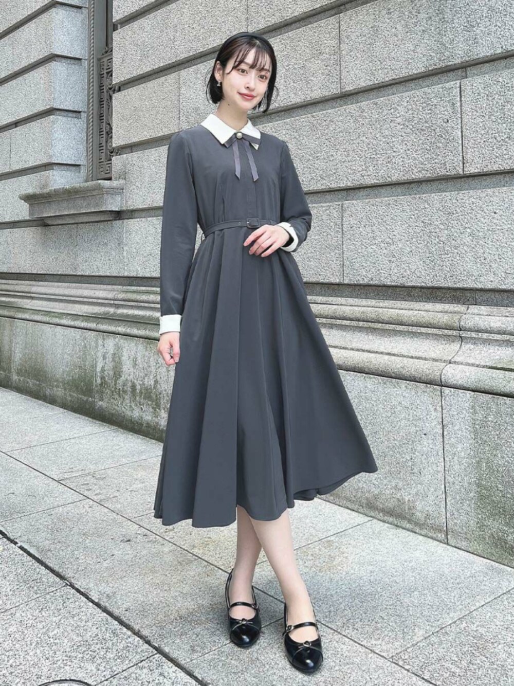 F i.n.t(F i.n.t オンラインストア)のワンピース「リボンタイ付きクレリックサーキュラーワンピース/fint フィント」を使ったコーディネート