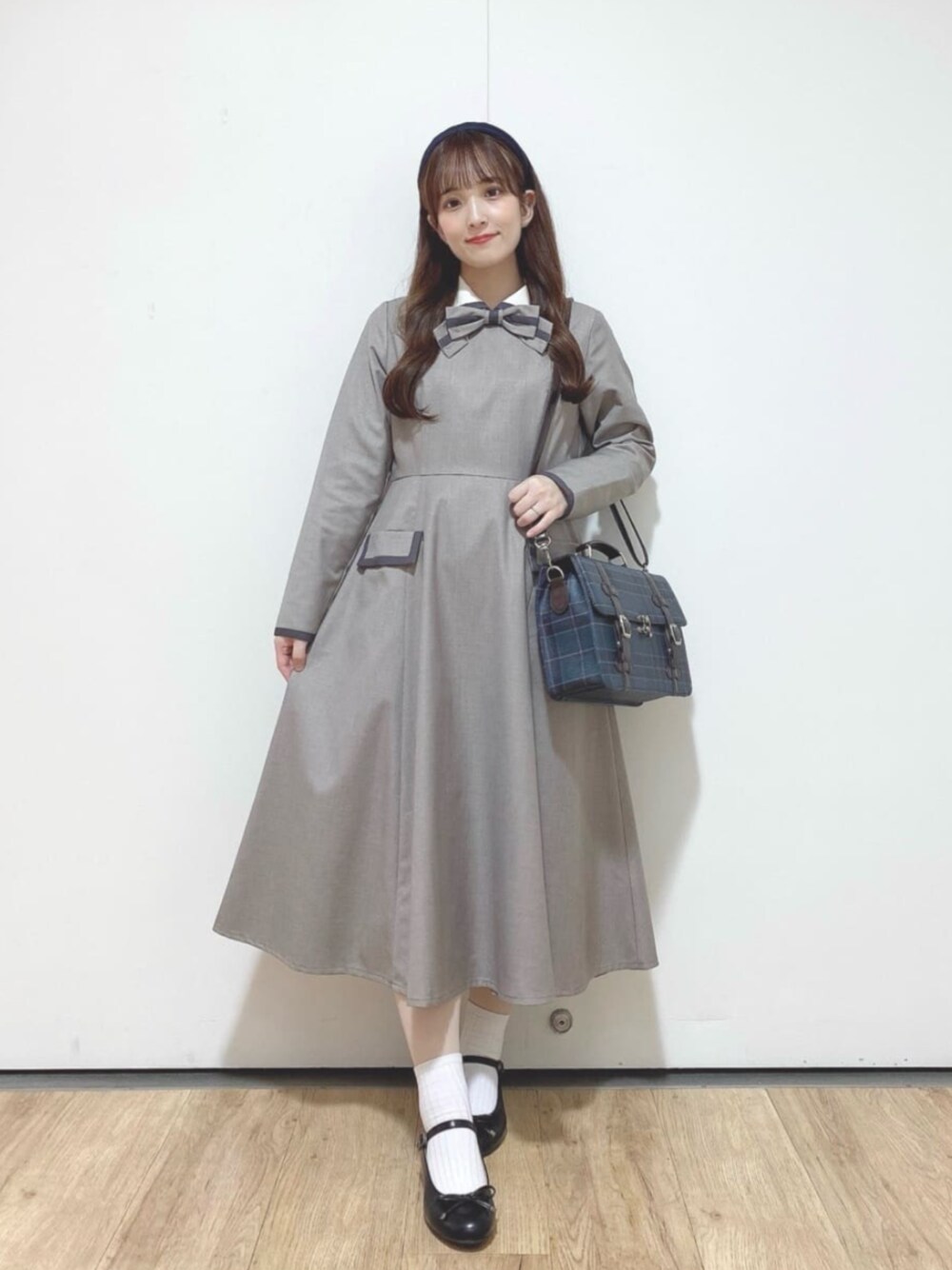 お嬢様学校の制服みたいなワンピース🏫 【ワンピース】 サラッとしていてるワンピースなので20度前半なら着れちゃいます❤️ シンプルなデザインではありますがポケットのパイピングやリボンが可愛さをアップ! リボンはピンで取り外し可能です✨ 150cmでも足首が出るので冬はショートブーツと合わせるのもおすすめです♪ 【バッグ】 長財布も入るくらいの大きさ◎ マチもしっかりある為、荷物が多い方でもたくさん入ります! 【パンプス】 22.5cmでSサイズ着用! ストラップが付いているので脱げないのが安心✨ 中のクッションがふかふかで足が疲れにくいです(^^) ブラックはオールシーズン履けるので万能カラーです! 150cm イエベ春 骨格ウェーブ 足のサイズ 22.5cm