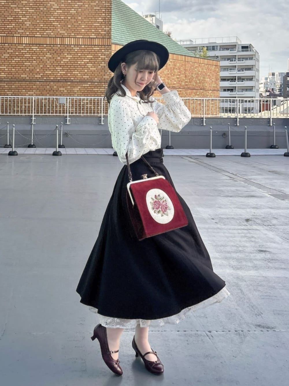 ブラウス… ツルッとしたお素材で軽い着心地です。 柔らかい生地なのでシワもつきにくそうな印象でした! ジャボタイとブローチはそれぞれ取り外しが可能なのでコーデイメージに合わせて組み合わせていただけます🤍 スカート… ウェスト部分のタックがスタイルをきれいに見せてくれます✨ ポケットもついていて機能性も抜群です! しっかり目の素材ですが重さはそこまで感じなかったです。 ✼••┈┈┈┈┈┈••✼✼••┈┈┈┈┈┈••✼ ♡168cm ♡骨格ウェーブ ♡ブルベ夏