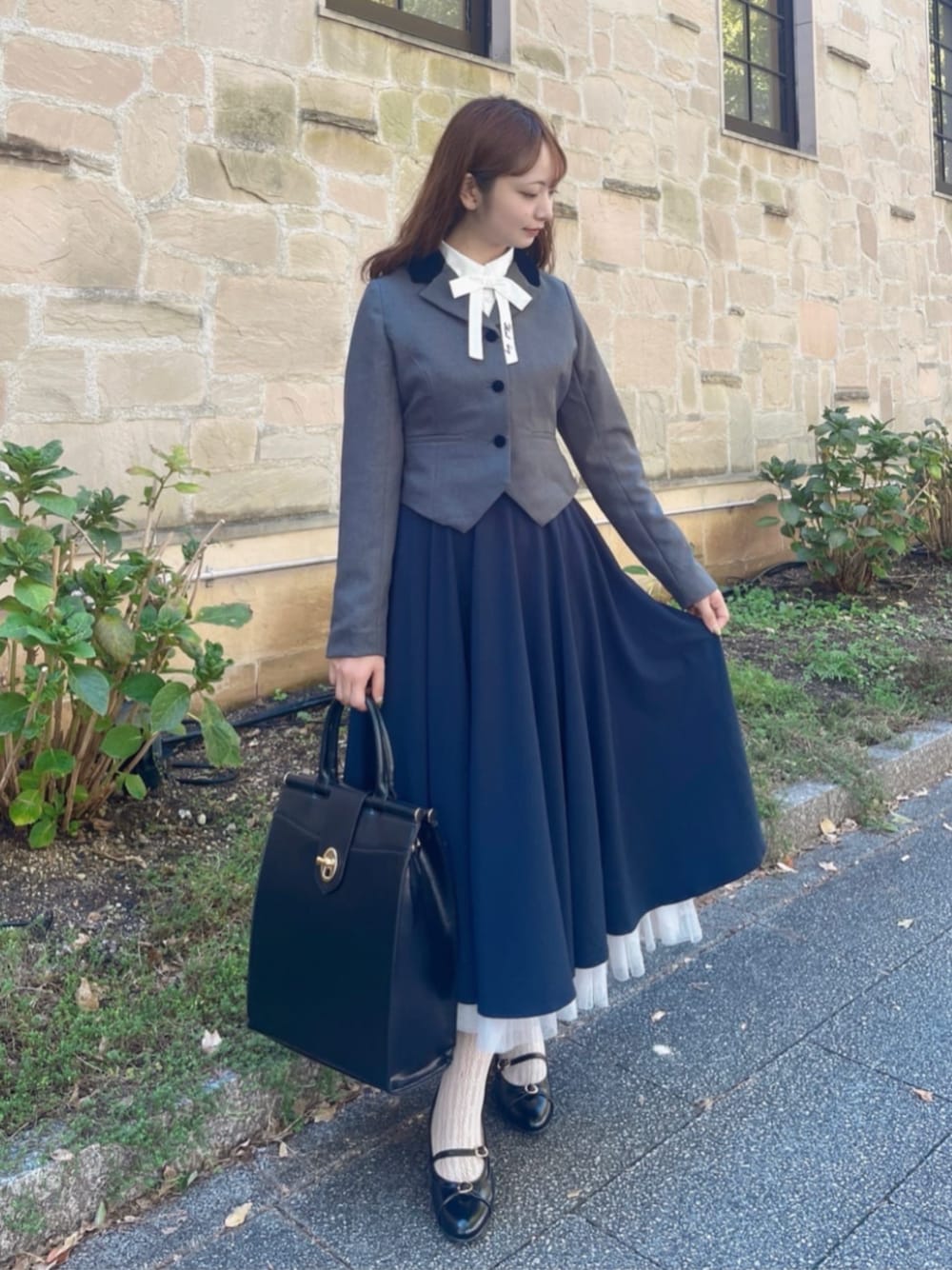 ︶⊹︶︶୨୧ 𝑰𝑻𝑬𝑴𝑺 ୨୧︶︶⊹︶ ✎ジャケット┈┈┈ ショート丈なので フレアスカートとの相性抜群です◎ ベロアの釦がとっても可愛いです♡ ✎ スカート┈┈┈ 広がりがうつくしい定番スカート♪ 新色のネイビーは、季節問わず使えて 着回しもたくさんできそうです⟡˖· ✎ ブラウス┈┈┈ リボン結びしなくても良いので、 とっても楽に着られます♪ シンプルなシャツとしても 使っていただけます◎ ✎バッグ┈┈┈ ハンド、ショルダー、リュックの3way.ᐟ お仕事用にもおすすめてす◎ ✎パンプス┈┈┈ 24cmでLサイズを履いています.ᐟ しっかりクッションが付いているので、 長時間のお出かけでも疲れにくいですˊ˗ ︶⊹︶︶⊹︶︶୨୧︶︶⊹︶︶⊹︶ ┆身長 ⇢ 159cm ┆ 靴 ⇢ 24.0cm ┆骨格 ⇢ 骨格ウェーブ ┆PC ⇢ イエベ春