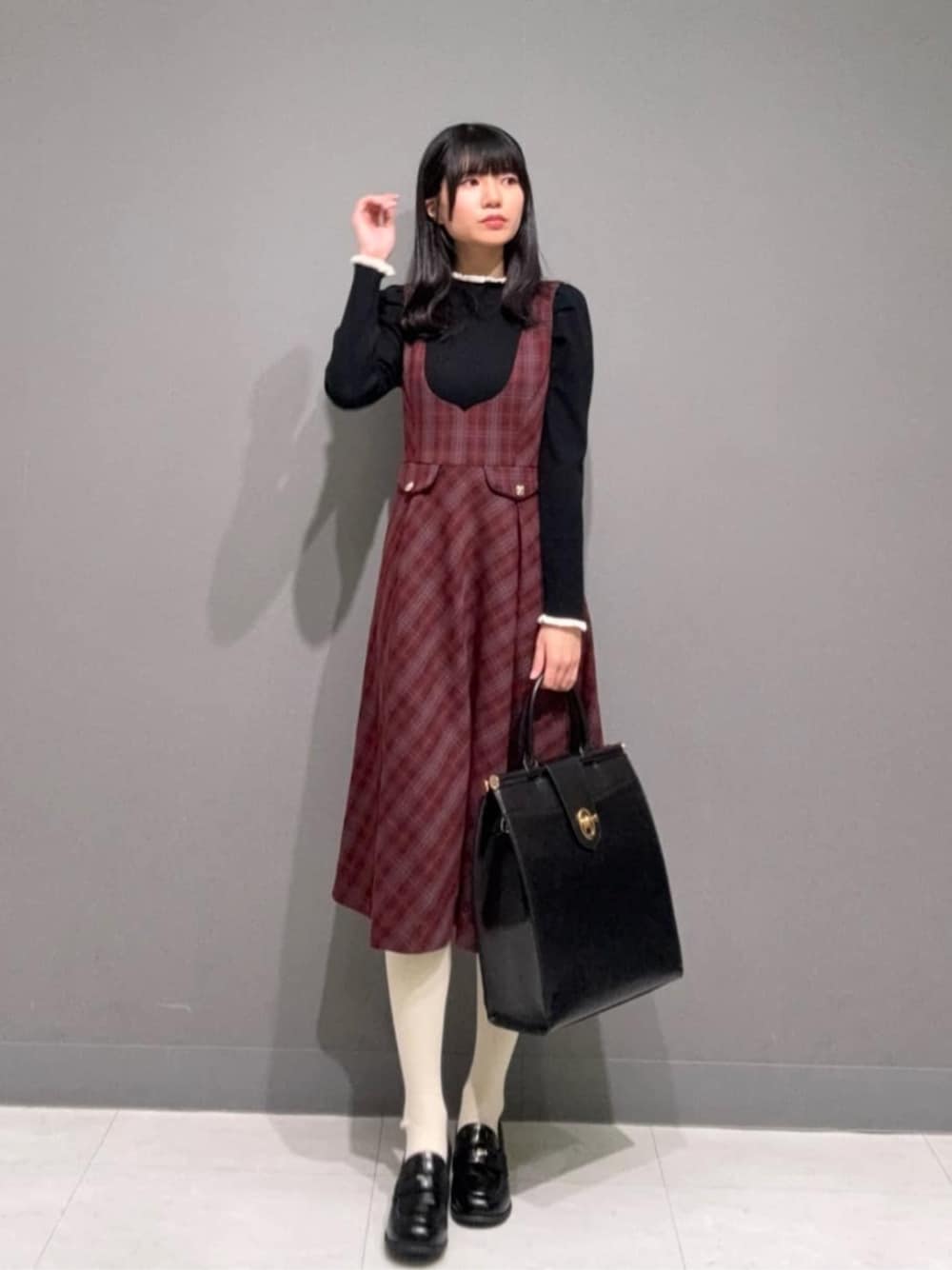 目を引くプレッピースタイル🪄 【ジャンパースカート】 冬向けあったか素材です🧶 高身長だとふくらはぎ真ん中程の丈でした! デザインポケット(飾り)のパイピングが黒だったので、 他のアイテムは黒で統一してみました🐦⬛ 別で実際に使えるポケットもついていました!! 定番のチェーンビットジャンスカに着心地はかなり近いです🌟 【ニット】 薄手なので暑がりさんにおすすめですよ☀️ 生地にはレーヨンが入っており、肌触りがとても良いです!◎ さりげないレースも可愛いです♪ 【ローファー】 23.5cmでMサイズがぴったりです! BLACKは光沢感があり、 大人めなコーデにも合わせやすくおすすめです! 【バッグ】 手持ち、斜めがけ、リュックの3wayタイプです♪ お仕事用でも大人気のバッグですよ👜 サッチェルほど可愛すぎず、かなり汎用性高めです! A4サイズも入り、 機種によってはノートパソコンも入るみたいでした…!! Profile📝 •165cm •骨格ナチュラル