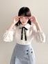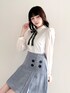 色味が深いグリーンが甘すぎないブラウス。 タイは取り外しができるので、シンプルな白ブラウスとしても使えます◎ ツイード素材がシーズンムードを盛り上げてくれるスカート。 フロントの金具飾りがポイントになって、高級感とクラシカルさも♩ すっきりした台形ラインが脚をきれいに見せてくれます✨ 展示会・美術館めぐりやおでかけにもピッタリです! -model profile- 身長:157㎝ 骨格:ウェーブ✕ナチュラル パーソナルカラー:ブルベ シューズサイズ:23.5cm M
