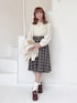 レトロプレッピーコーデ🌷 ふわっとしたお袖と繊細なレースリボンがクラシカルなブラウス🎀 一枚で顔まわりが華やぐから、写真に残る日にもぴったり◎ なじみのいいアイボリーカラーは、どんなボトムとも相性抜群なのもうれしいポイント♪ 落ち着いたネイビー×ブラウンのチェックが、品の良さと可愛さを両立してくれるスカート📚 ウエストのベルトでスタイル良く見せてくれるのもうれしいポイント◎ チューリップポッド柄がほっこりする目を惹くカーディガン🌷 ざっくり編みのほっこり感が、秋冬のおでかけにぴったり◎ コーデに羽織るだけで柔らかい印象にしてくれます! 通学シーンから街歩きデートまでいろんなシーンでおすすめのコーデです🌟 -model profile- height: 152cm frame:ウェーブ personal color:イエベ春