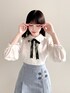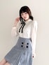 色味が深いグリーンが甘すぎないブラウス。 タイは取り外しができるので、シンプルな白ブラウスとしても使えます◎ ツイード素材がシーズンムードを盛り上げてくれるスカート。 フロントの金具飾りがポイントになって、高級感とクラシカルさも♩ すっきりした台形ラインが脚をきれいに見せてくれます✨ 展示会・美術館めぐりやおでかけにもピッタリです! -model profile- 身長:157㎝ 骨格:ウェーブ✕ナチュラル パーソナルカラー:ブルベ シューズサイズ:23.5cm M