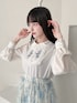 Blue rose coordinate💙 オリジナル釦がポイントのカーディガン✨ コンパクト丈だからウエスト位置が高く見えてるのも嬉しいポイント! すっきりしたVネックデザインでブラウスの衿元もしっかり見えます◎ ヨークデザインがとっても上品なブラウス♩ フロントのローズの刺繍もクラシカルでときめきます…♡ 淡いブルーのローズプリントがロマンティックなスカート🌹 ふわっと広がるチュール素材が軽やかで春にピッタリ♡ -model profile- 身長:157㎝ 骨格:ウェーブ✕ナチュラル パーソナルカラー:ブルベ シューズサイズ:23.5cm M