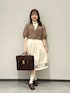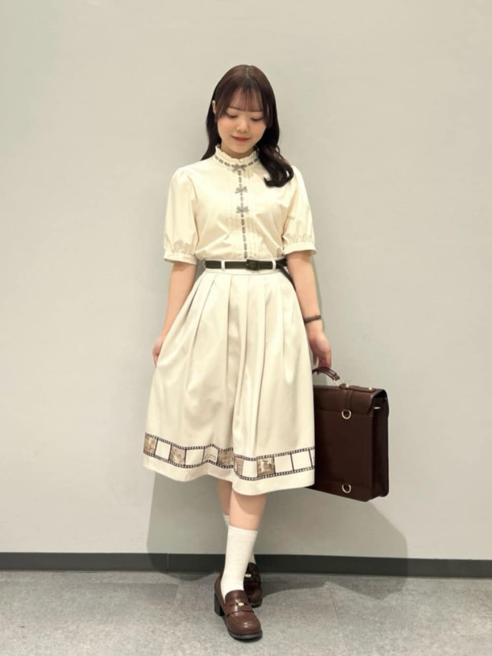 2026𝑆𝑆 𝐶𝑜𝑙𝑙𝑒𝑐𝑡𝑖𝑜𝑛 🌸 beigeでまとめたレトロガーリーコーデ🤎 ブラウス… ギンガムチェックのリボンがかわいいブラウス🎀着用したivoryはベージュにも近いお色味でとってもレトロな雰囲気に📖♡ ポリエステル100%の生地でシワになりにくくさらっと着用できました。 スカート… フィルムプリントがポイント🎞️♡フィントの世界観を楽しめる一品です♩ 背中部分にゴム入りでウエストはややゆったりめ、ベルト付なのでウエスト位置はしっかり固定できました! ジャケット… セットアップアイテムですが、セット以外でも着回ししやすいです🤎 5部袖なので季節の変わり目にもぴったり◯ シューズ… Sサイズを着用してます。 横幅はちょうどぴったりめ、かかと部分がやや余ったので、中敷を入れるとよりフィットするサイズ感でした!💡 • + . ˙ ✦ ♡ㅤ°. • °. ✿ * • + . ˙ 🕊️【𝗌𝗍𝖺𝖿𝖿 𝗉𝗋𝗈𝖿𝗂𝗅𝖾】 身長:153cm 骨格:ウェーブ パーソナルカラー:イエベ春 顔タイプ:フレッシュ シューズサイズ:21.5〜22センチ