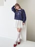 ゆるっとしたシルエットがかわいいスウェット。 ネイビーカラーが落ち着いた雰囲気なので、カジュアルになりすぎないです◎ フロントの刺繍のシュナウザーがとってもかわいいです🐶 ふんわり広がるシルエットのときめくスカート。 裾からさりげなく見えるチュールが、コーデ全体をぐっとロマンティックにしてくれます🩰 シンプルなホワイトカラーなので、どんなトップスとも合わせやすい万能アイテム◎ ころんとしたフォルムと小さなリボンがガーリーなパンプス。 赤色がコーデのアクセントに❤️ -model profile- height: 152cm frame:ウェーブ personal color:イエベ春