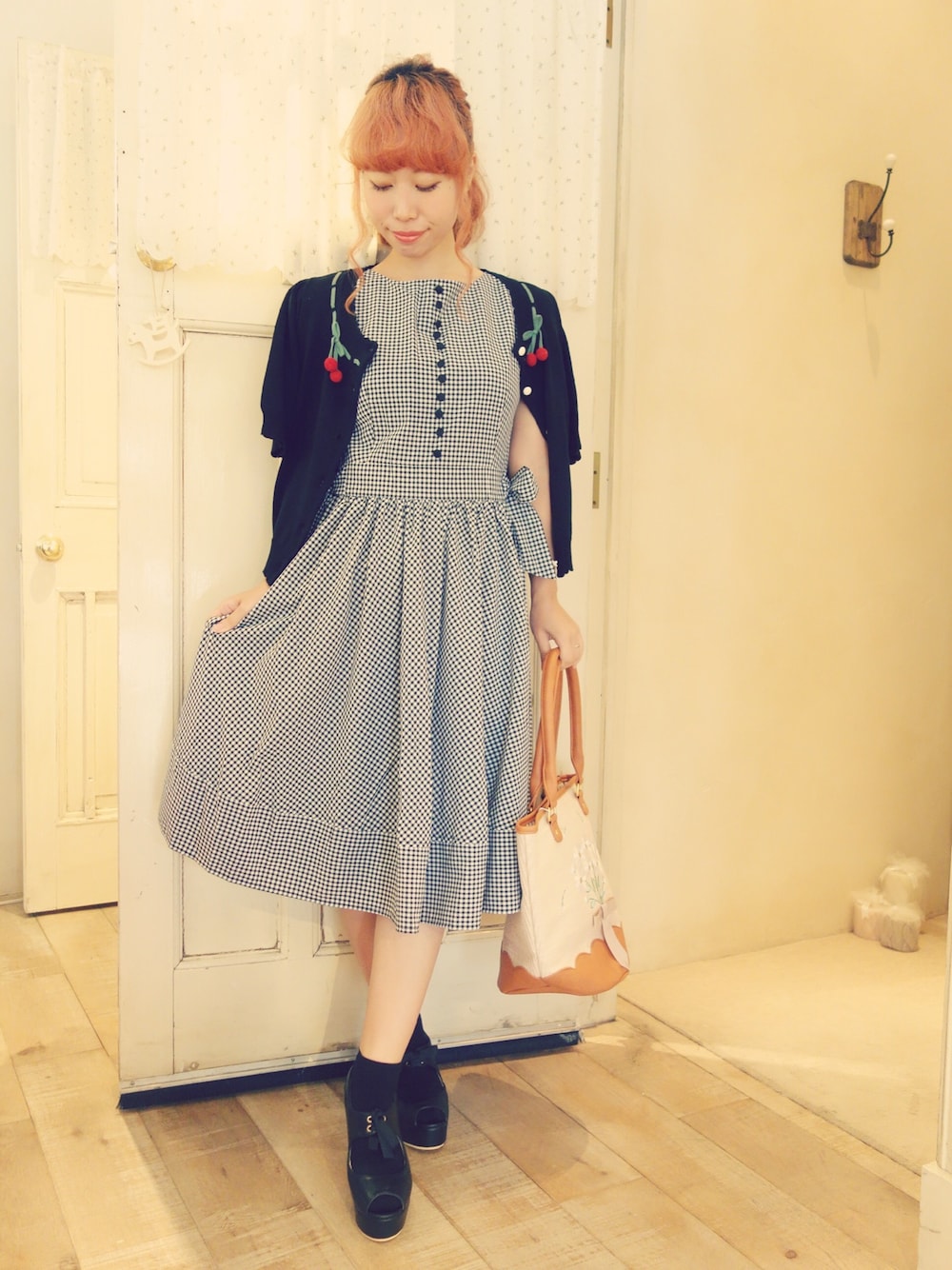 F i.n.t(F i.n.t オンラインストア)のワンピース「ギンガムチェックフレンチスリーブワンピース」を使ったコーディネート