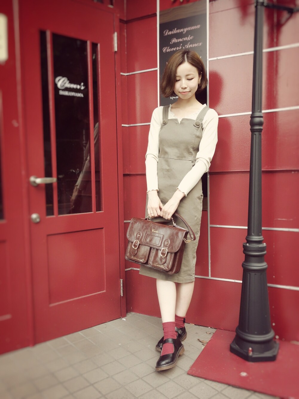 春夏から人気定番のタイトワンピースは、秋らしくアースカラーでお作りしました^ ^ ツイル素材でカジュアルな雰囲気になるので、小物使いでF i.n.tらしいレトロ感を出しました✴︎