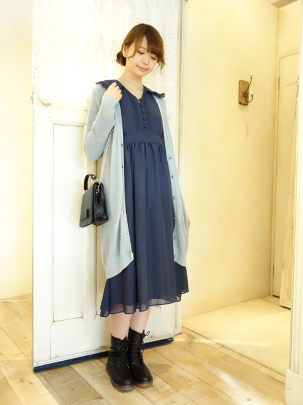 休日のお出掛けStyle♪ ふわふわの衿とフレアーに広がるシフォンワンピースは、ロング丈にあわせてロングカーデとの相性も◎ 足元は少し可愛さを外して ゴツめのブーツでカジュアルミックスにしてみました🐻 ------------------------------------------ F i.n.t & an another angelus 2015 Autumn Collection ただいま全店にてノベルティフェア開催中♪ 詳しくはHPまで(www.fint.jp)