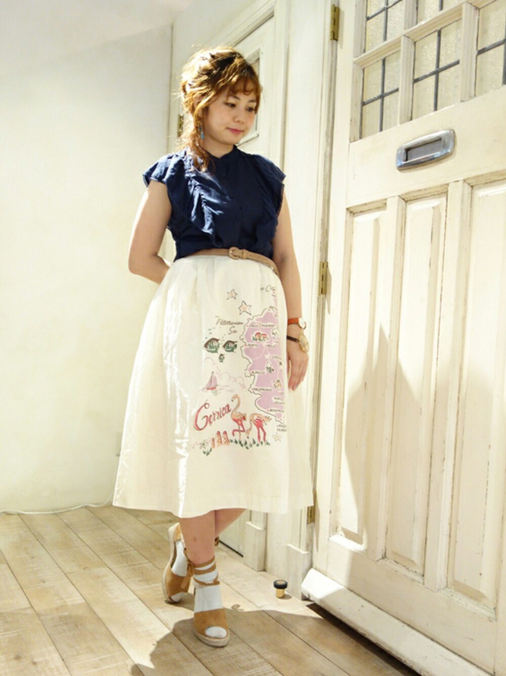 ヴィンテージスカーフのようなMAP柄スカートを主役にトップスはNAVYで涼し気&引き締めて・・・🐠💎💓 ☆【#Fintの夏フェス】 開催中☆ F i.n.t&an another angelusの新作お洋服Getしたよ^^という皆さま! コーデ投稿の際、ぜひ#Fintの夏フェス タグをぽちっと付けてください♪ みんなでお披露目しちゃいましょ(*˘︶˘*).。.:*♡ ************************ ユーザー名(Fi.n.tTaiwan)と合わせて日々スタイリング更新中です♪ ショップのイベント情報はインスタグラムをcheckしてくださいね♡ 【F i.n.t Instagram】@fi.n.t_official 【angelus Instagram】@an_another_angelus_official
