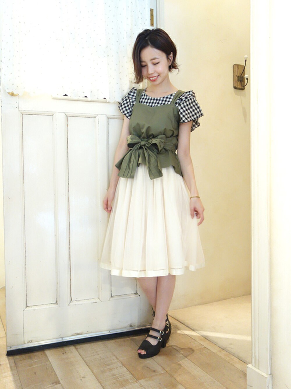 F i.n.t(F i.n.t オンラインストア)のキャミソール「ウエストピンタックリボンビスチェ/an another angelus」を使ったコーディネート