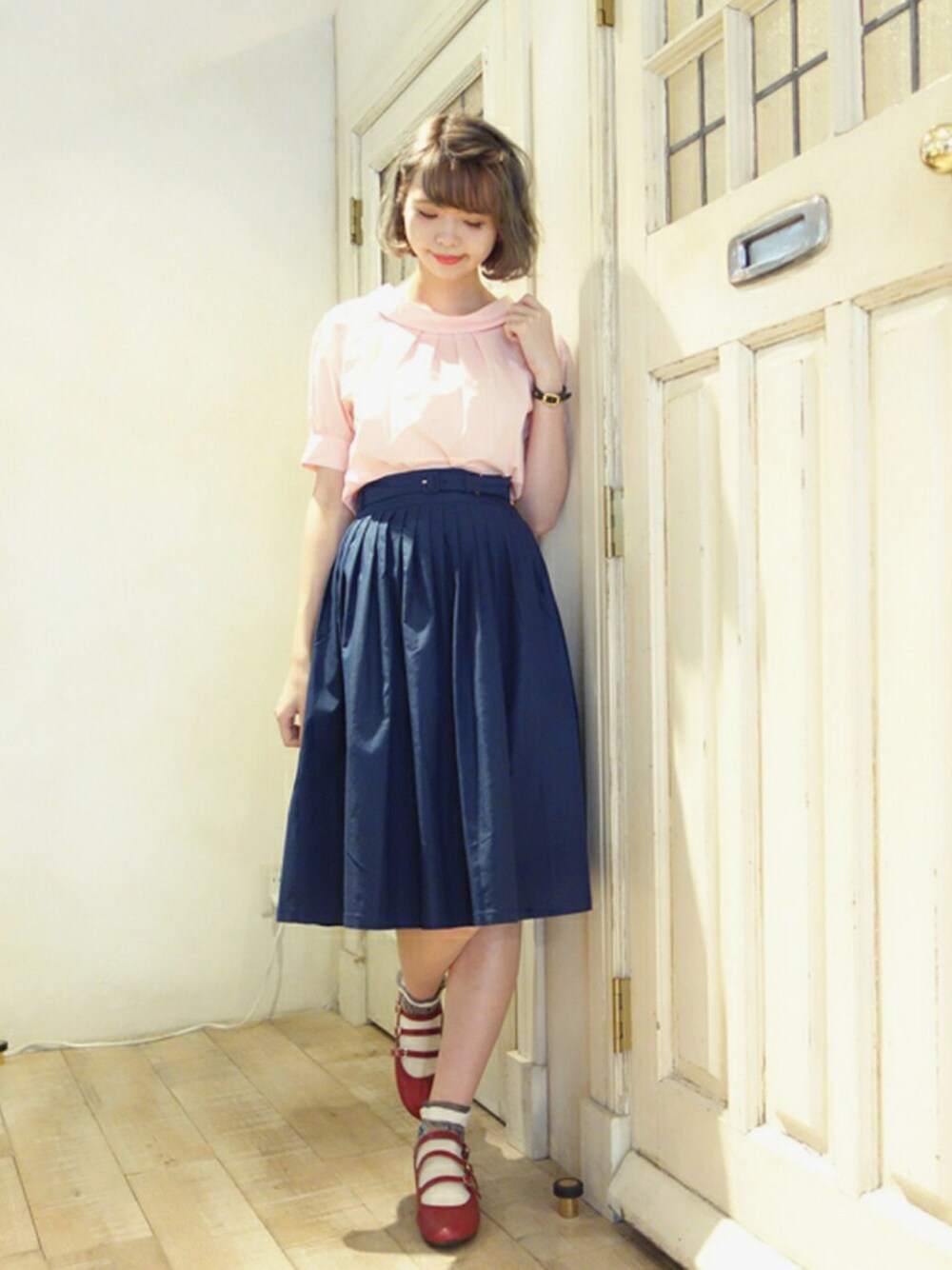 ロールカラーの襟ぐりが可愛い 淡いピンクカラーのブラウスは、ネイビーですっきり引き締めて♪ ☆【#Fintの夏フェス】 開催中☆ F i.n.t&an another angelusの新作お洋服Getしたよ^^という皆さま! コーデ投稿の際、ぜひ#Fintの夏フェス タグをぽちっと付けてください♪ みんなでお披露目しちゃいましょ(*˘︶˘*).。.:*♡ ************************ ユーザー名(Fi.n.tTaiwan)と合わせて日々スタイリング更新中です♪ ショップのイベント情報はインスタグラムをcheckしてくださいね♡ 【F i.n.t Instagram】@fi.n.t_official 【angelus Instagram】@an_another_angelus_official
